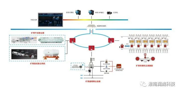 该系统集粉尘在线监测系统与自动喷雾洒水控制系统为一体,,,,对煤矿井下粉尘浓度、温湿度实现在线监测,,,,并与采煤机降尘系统、掘进降尘系统、喷雾洒水装置等实现集成联动。。。。。该系统应用了无线通讯、雷达探测、粉尘监测、红外热释感应、温湿度感应、数字孪生等手艺,,,,实现了远程监控、三维可视化、智能剖析等功效。。。。。